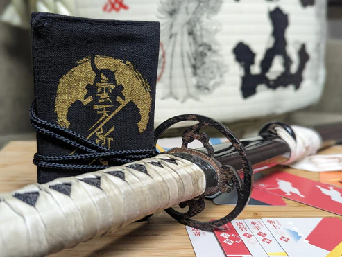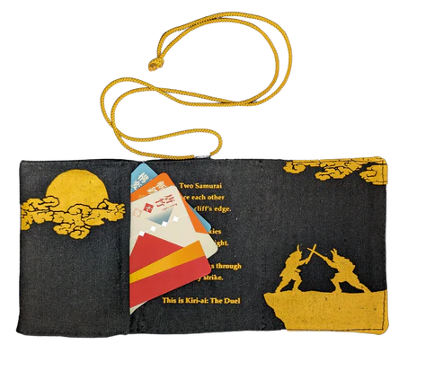 Stored in a cloth case based on Edo-era Japanese wallets to carry gold coins